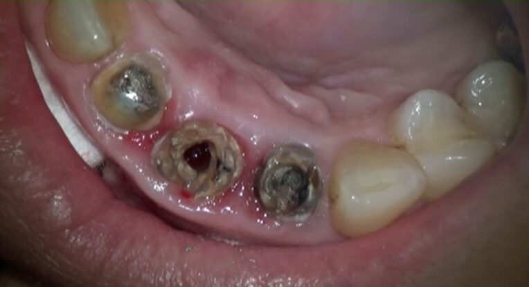 右上1番は、根尖部の破壊が非常に大きい。