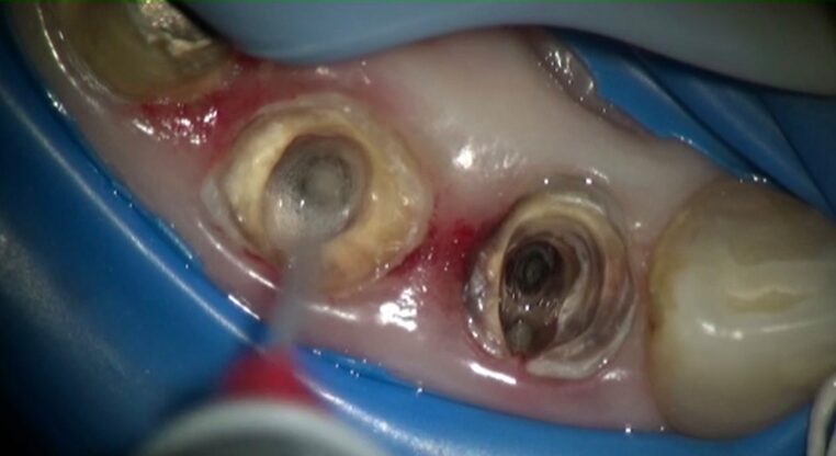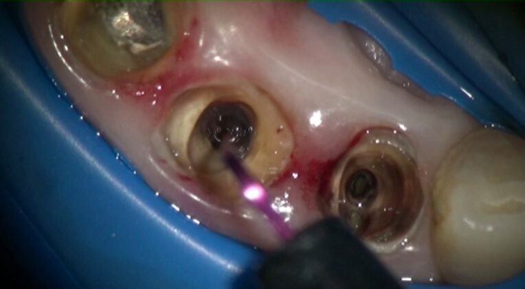 さらに根管内をアクティベーション洗浄によって徹底的に消毒。