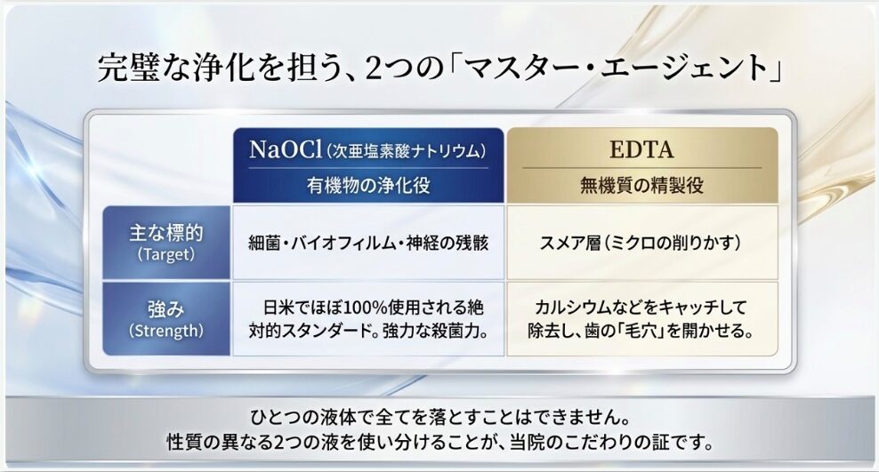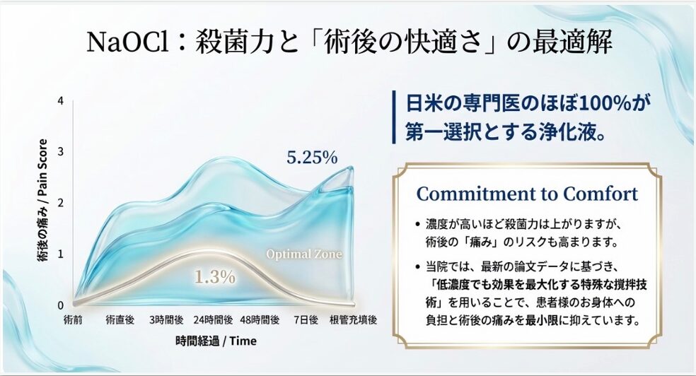 NaOCl:殺菌力と「術後の快適さ」の最適解